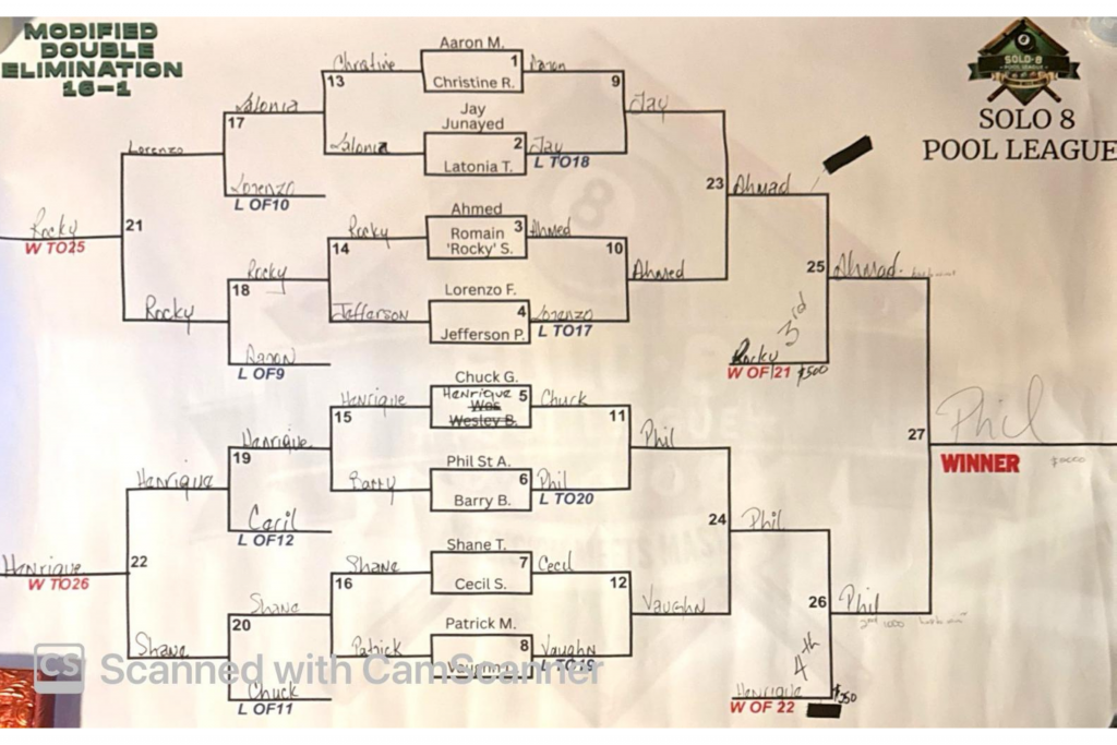 We appreciate the management and staff for everything they do for the Solo 8 Pool family!